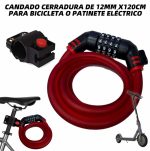 (Rojo)Candado Antirobo Código De 4 Dígitos Para Patinete Eléctrico Bicicletas Seguridad 12Mm X 120Cm Cerradura Con Combinación De Alta Calidad