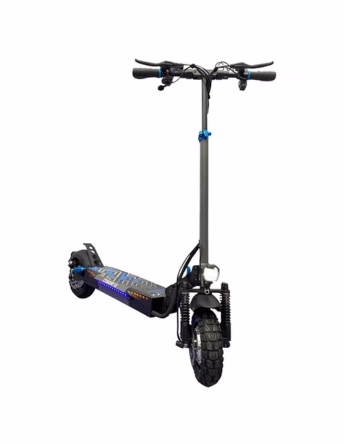 Además, una batería con una capacidad de 13 Ah 48V, eficiente y estable con una autonomía de hasta 45 Km, un completo Display Multifunción con el que podrás seleccionar hasta 3 marchas diferentes, botón de desconexión de motores en el que puedes activar el motor trasero, o delantero y trasero para tener tracción total, intermitentes y una estructura que impacta a primera vista de lo bien que está construida.